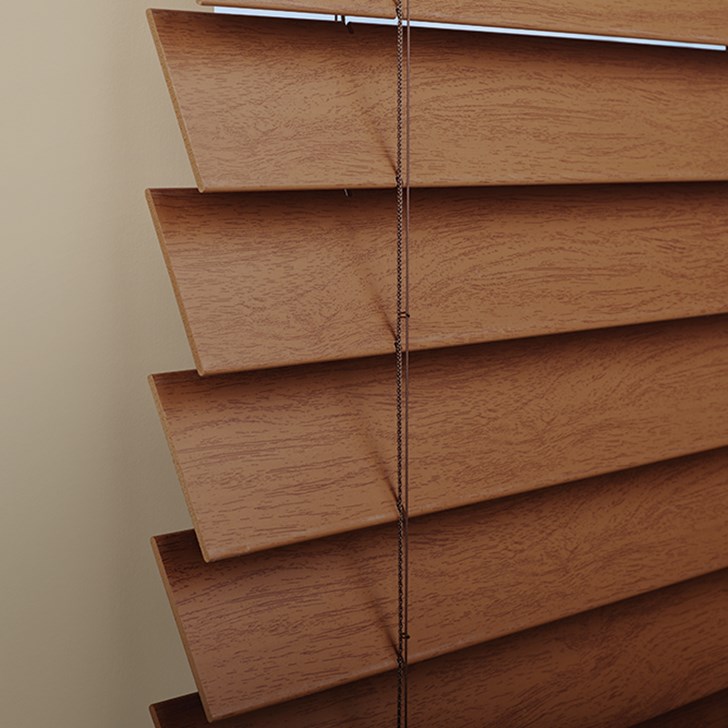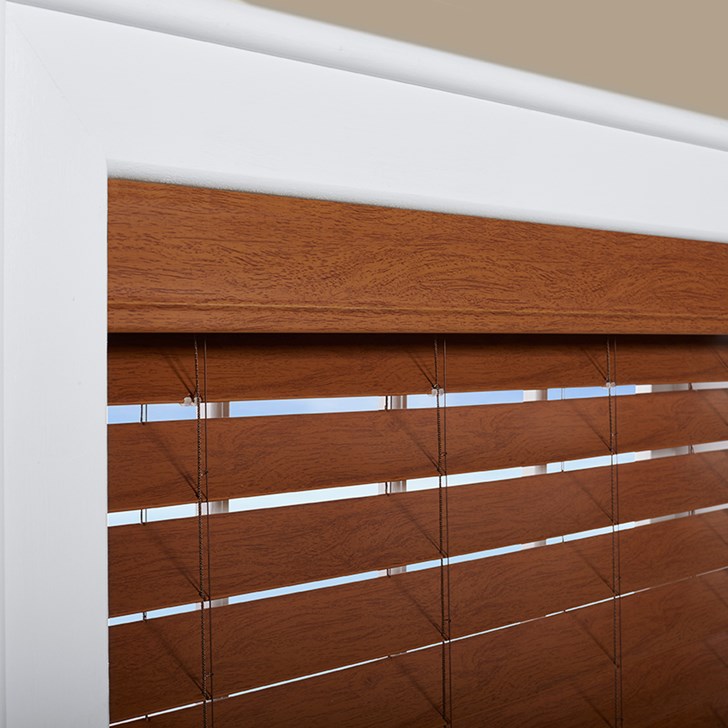 Select the Levolor 2 Inch Faux Wood Blinds made from NuWood ™ to dress up your home with the appearance of real wood at a more affordable price. Available in premium stains and sandblasted colors, these durable blinds are moisture resistant and won’t warp or crack. The blinds come cordless for streamlined operation. Want to enhance the looks of your blinds as well as the performance? Try adding slat motorization ! Motorized operation is available with the Bluetooth-enabled Premium 6-Channel Remote which can pair with the LEVOLOR app. Also, enjoy a modern bottom rail design that allows for the best closure on faux wood blinds.